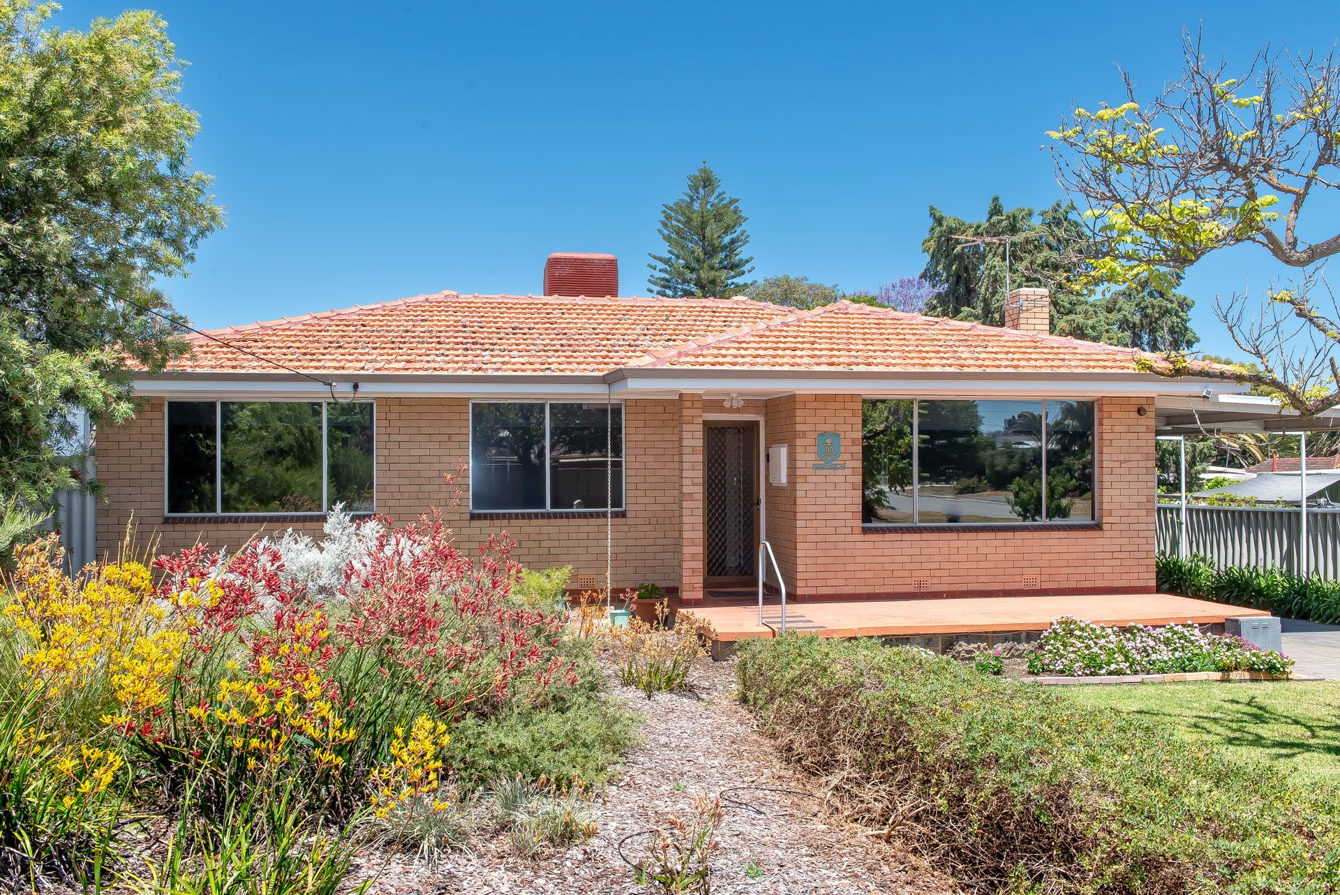The double-brick home with a tiled roof features: